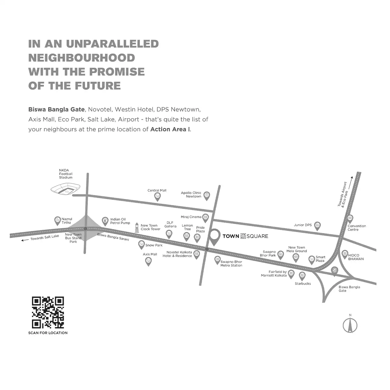 Unveil premium living at Srijan Town Square, No. 165, Plot No, BB/1, Major Arterial Road (South East Extension), Action Area I, Newtown, Kolkata 700156. Enjoy seamless connectivity to highways, schools, shopping centers, and healthcare, all surrounded by lush greenery and vibrant urban amenities for the ultimate lifestyle!